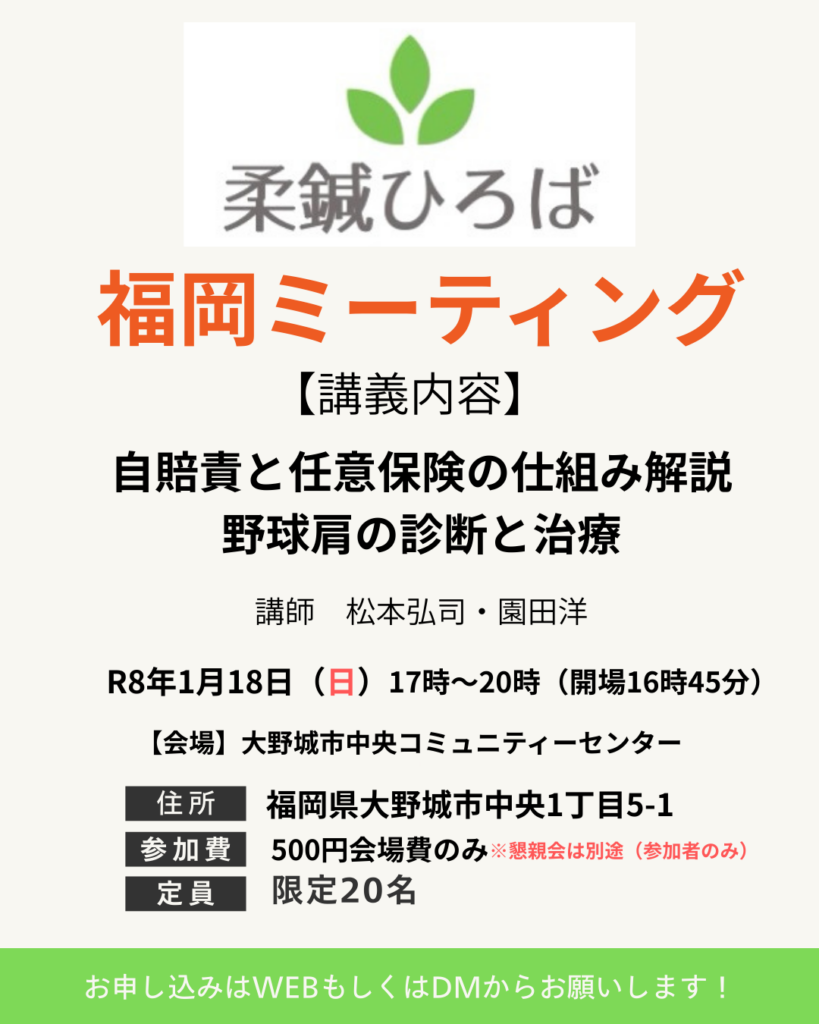 このたび「柔鍼ひろば 福岡ミーティング」を開催いたします。