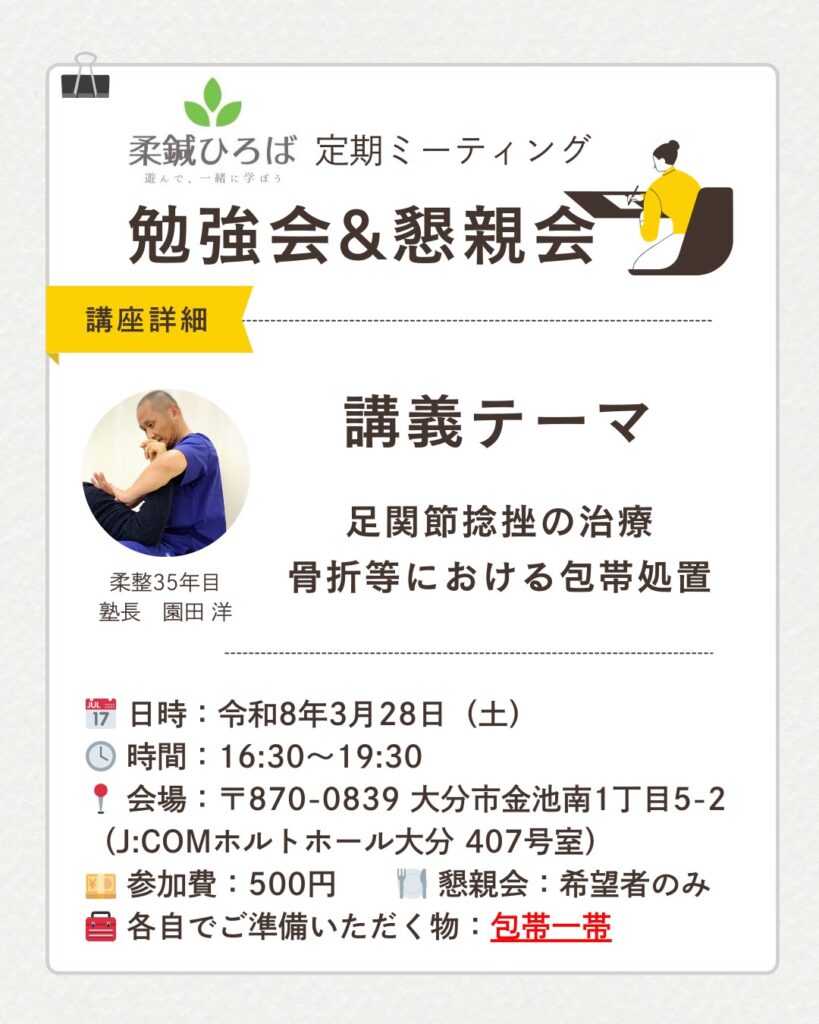 講義テーマ:足関節捻挫の治療、骨折等における包帯処置